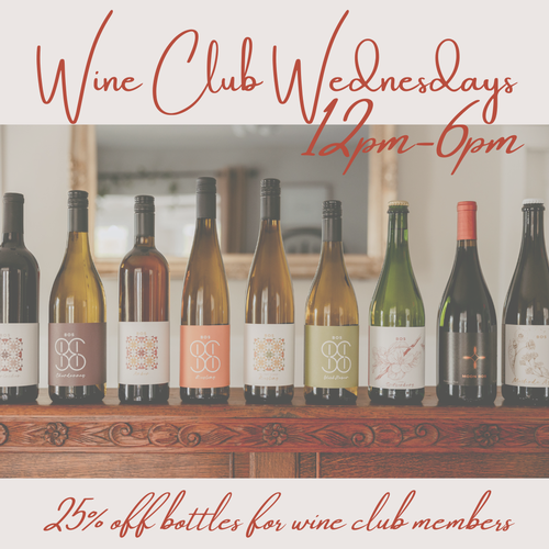We have THE BEST wine club members and we love to celebrate them! Wine Club Members who visit us on Wednesdays will recieve special pairing as our way of saying thank you for being a member at BOS Wine Garden. Club Members can also purchase bottles at 25% off on Wednesdays too!